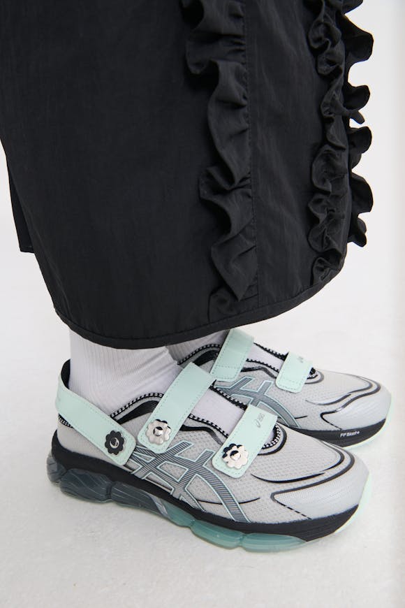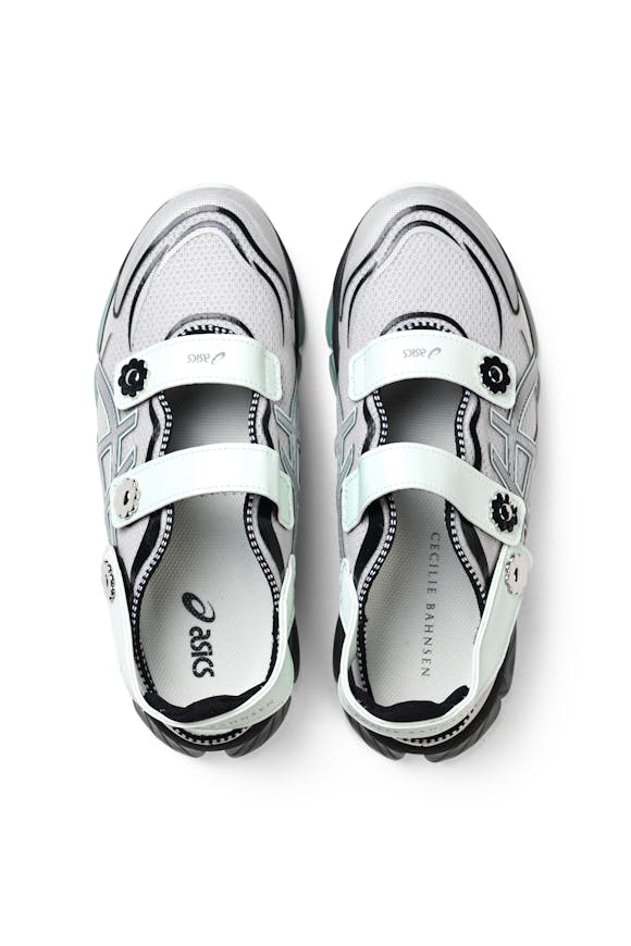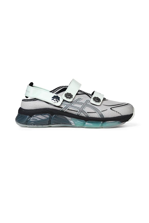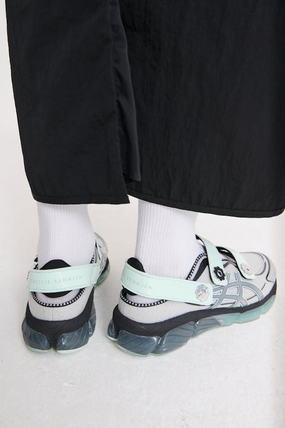 The first-ever women’s model of ASICS’ Gel-Quantum 360 VIII, Cecilie brings her signature feminine vision of everyday couture to this technical sneaker – radically reworking it into a sandal. Created using Division Space technology, utilising the space between the GEL and the midsole for enhanced comfort. The sandal-style upper is completed with two velcro straps embellished with a floral application - a nod to the previous GT-2160 collaboration. The upper base features techy, two-tone mesh and 5D print overlays while the outsole uses a semi-transparent rubber piece with a customised floral print underneath.